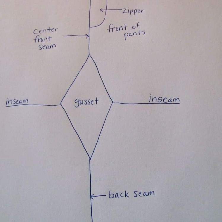 Thanks to The Sewing Garden for her inspiration with this great explanation on how to add a gusset to trousers or leggings. For full blog: https://thesewinggarden.com/tag/how-to-put-gussets-in-the-crotch-area/