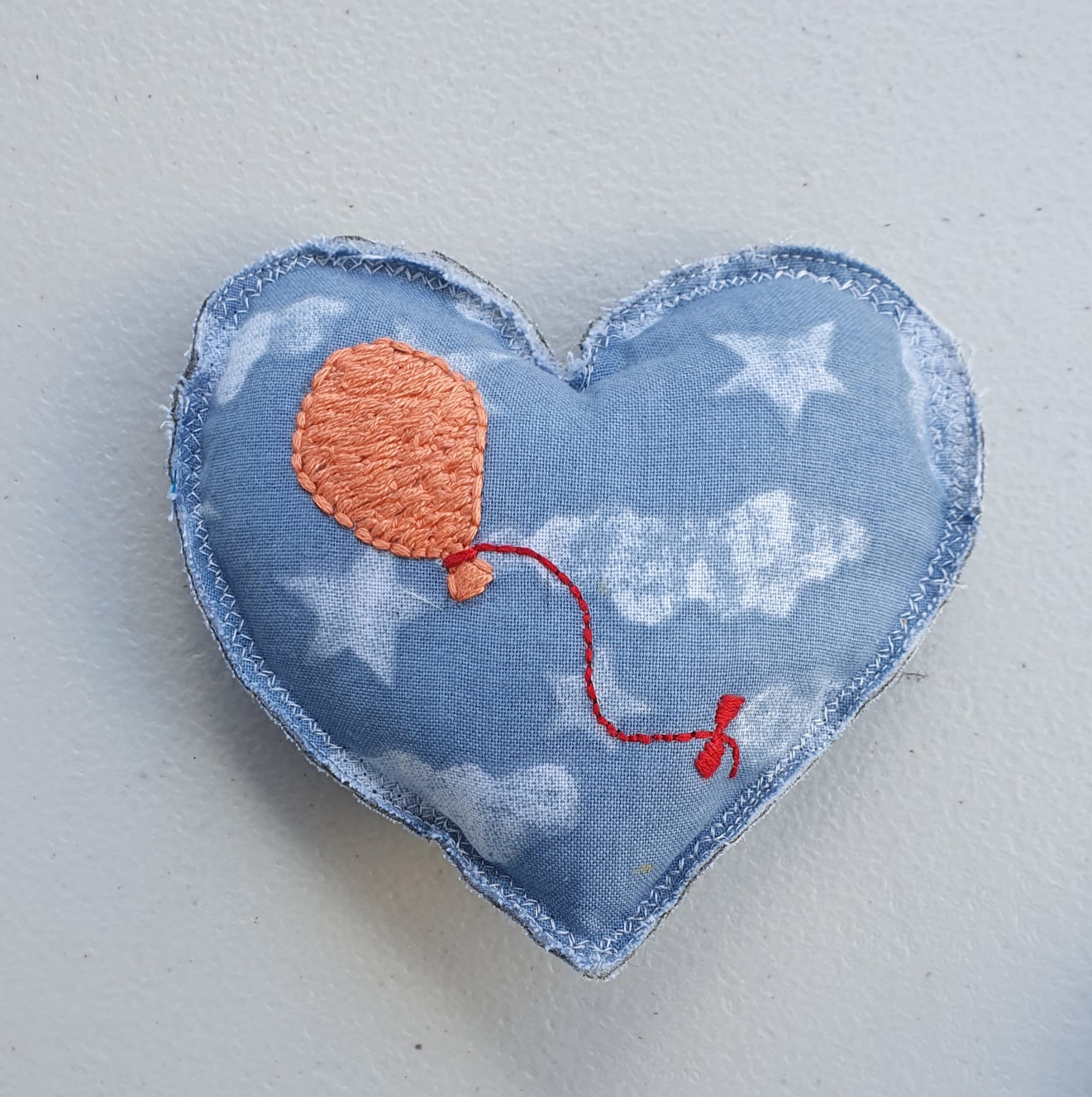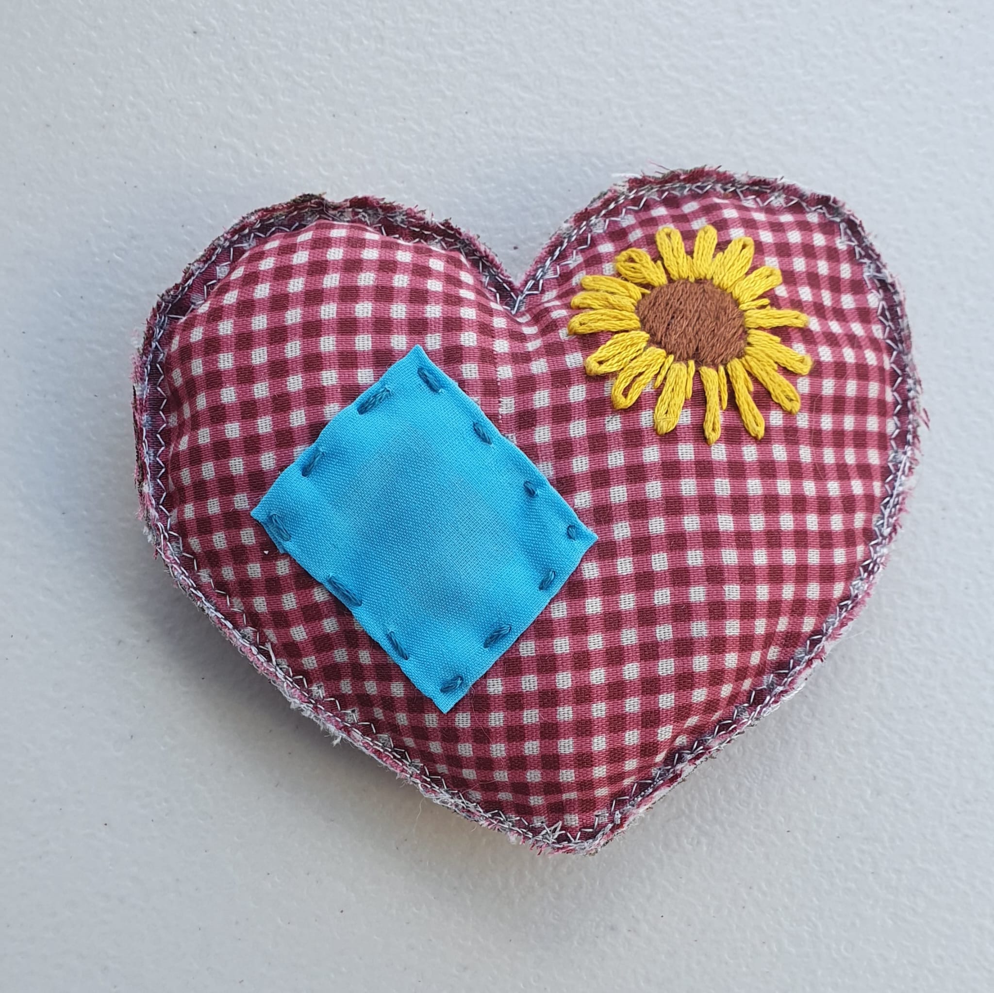 The hearts around the edge are all designed to inspire your patching and mending. Make the mend into a decorative feature : stich over the hole, with a bit of fabric at the back, and add extra detail to make it whatever you want: a strawberry, a balloon, a daisy, a rocket or whatever you like! Let your imagination run wild.