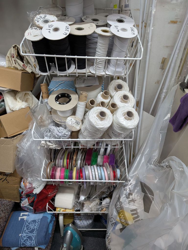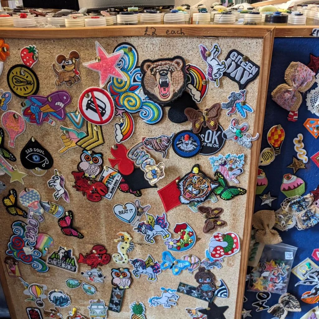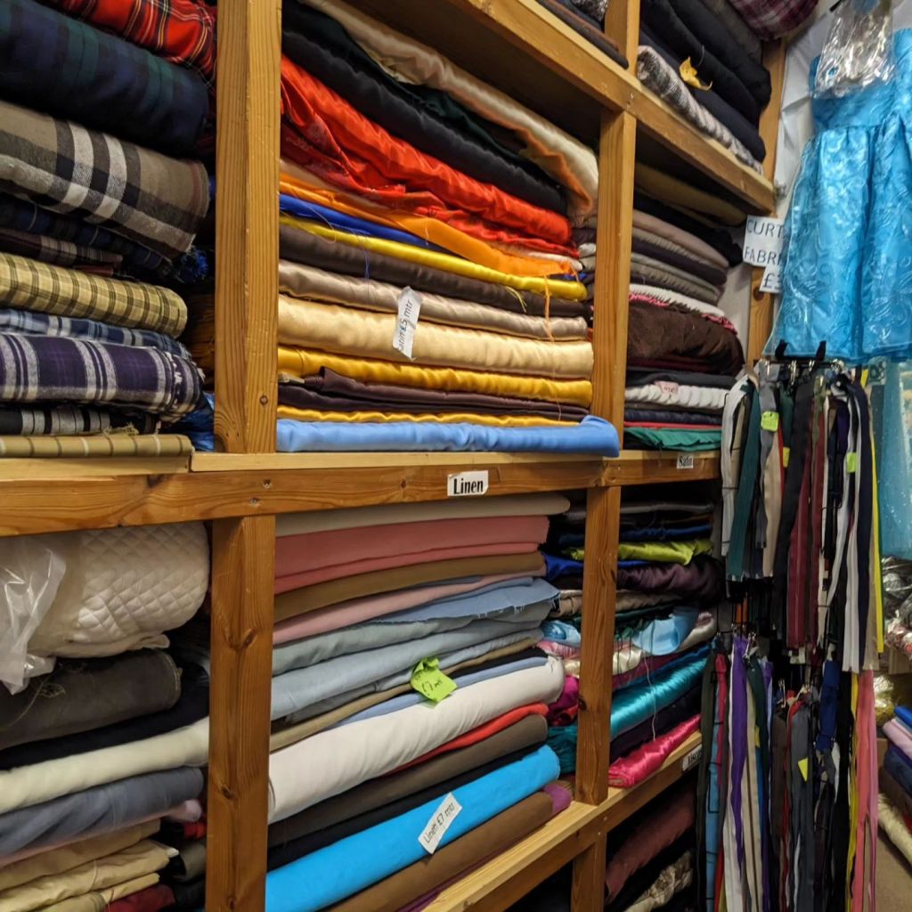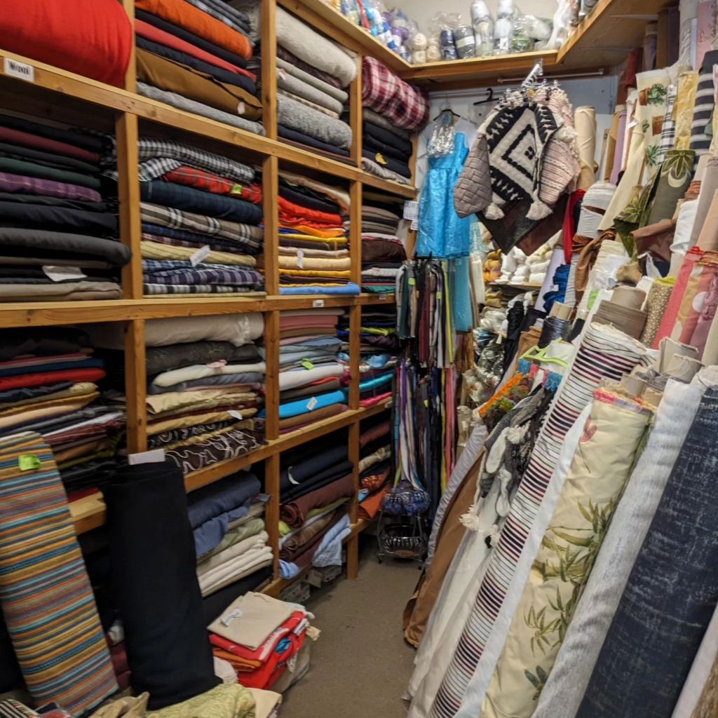 Good variety of fabrics, sewing notions, ribbons, buttons, zips and other bits and pieces to help with your sewing.