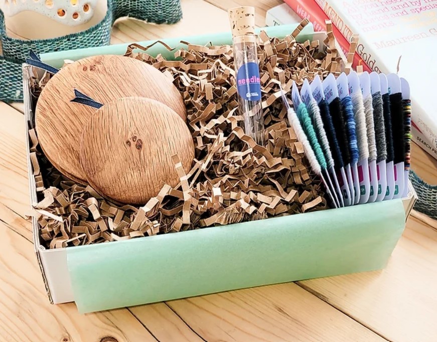 We are big fans of the Ministry of mending. Although not local its a small business focused on mending and equipment. Our favorites are their darning discs which are great for darning most items and easier to use than a mending mushroom or embroidery hoop. They also have kits, recycled yarns and speedweve if you want to go up a level in your mending.