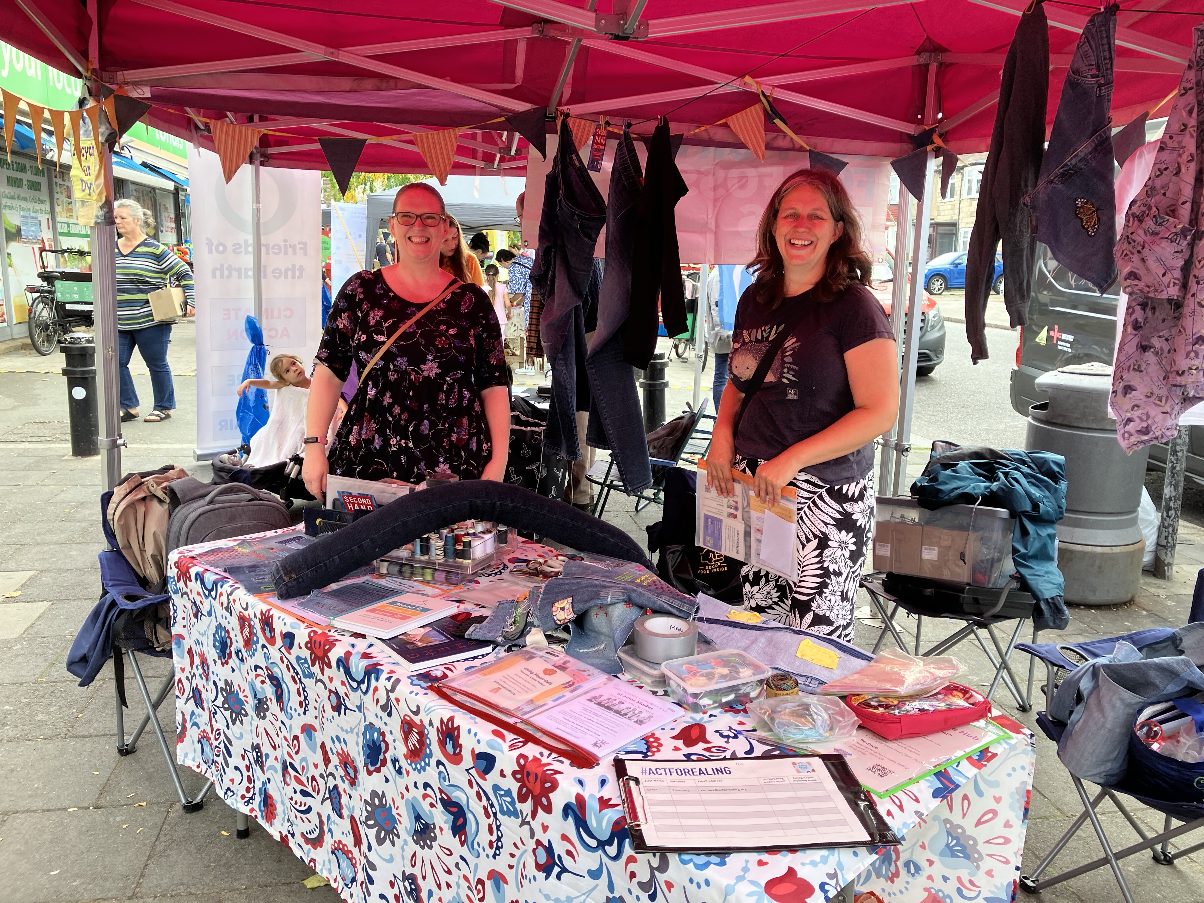 We bring our Ealing Clothes Repair Cafe kit to teach people how to repair their items. Samples, books and upcycled projects are displayed to inspire. All levels of sewing are welcome, from beginners to advanced sewing skills, there’s always something new to share or learn. Participants bring along a clothing item that needs mending for guidance and suggestions from our tutors.