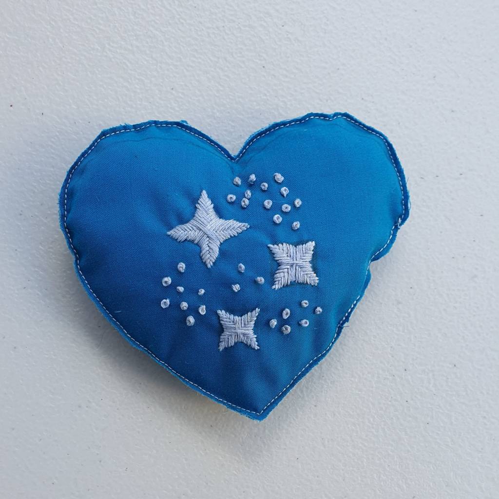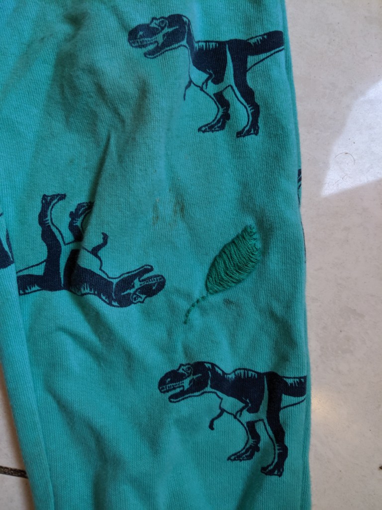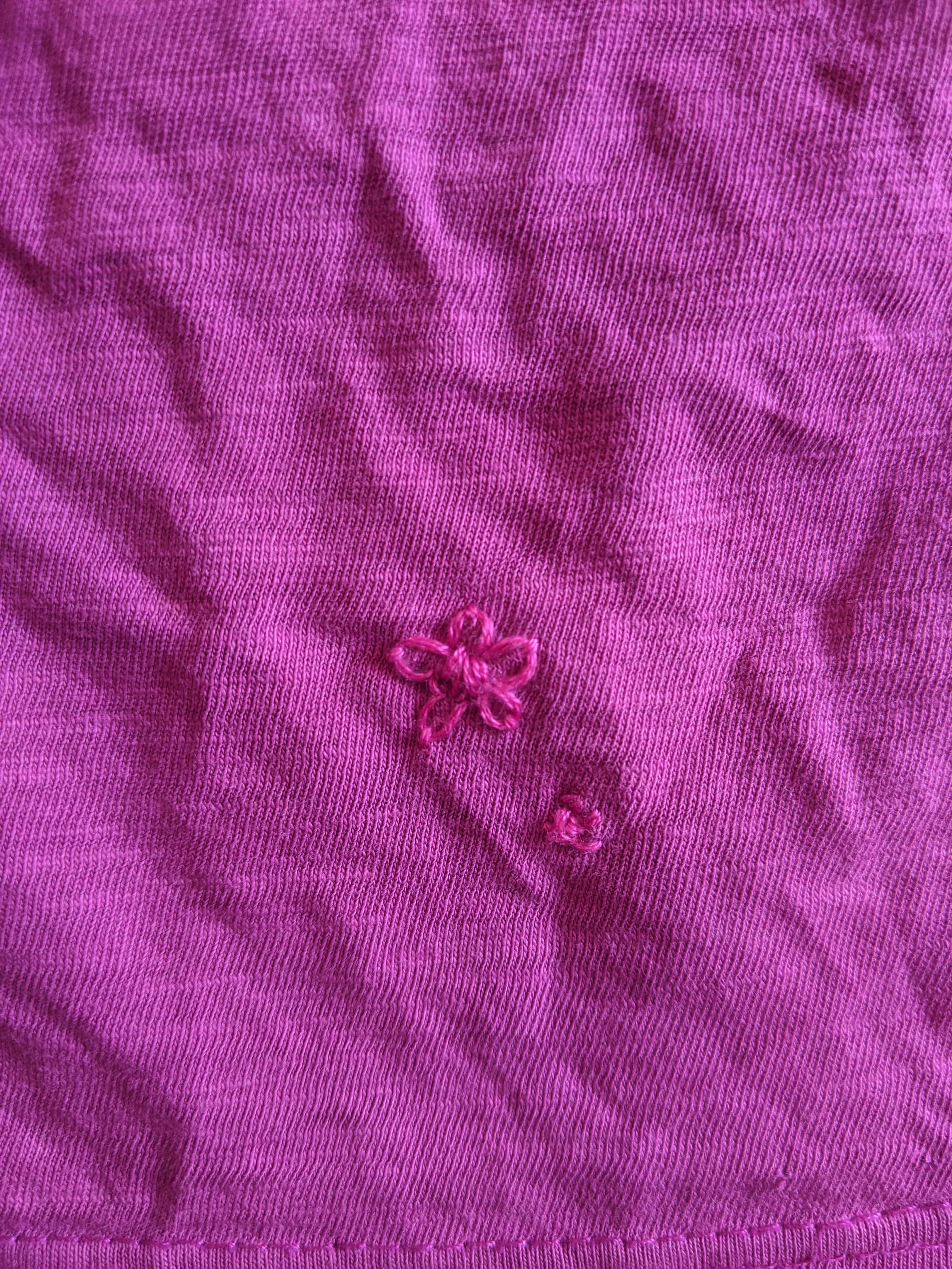 Embroidery can also be done over stains to hide the marks and make a feature. Mary did this with her daughters school shirt, with white lazy daisies over stains on the white t-shirt, completely hiding the stain and the daisies blending in with the shirt.