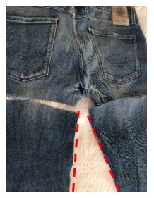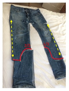Then either cut along the inside of both legs to open them up, or if you need a bit more fabric un-pick the seam on the inside leg.